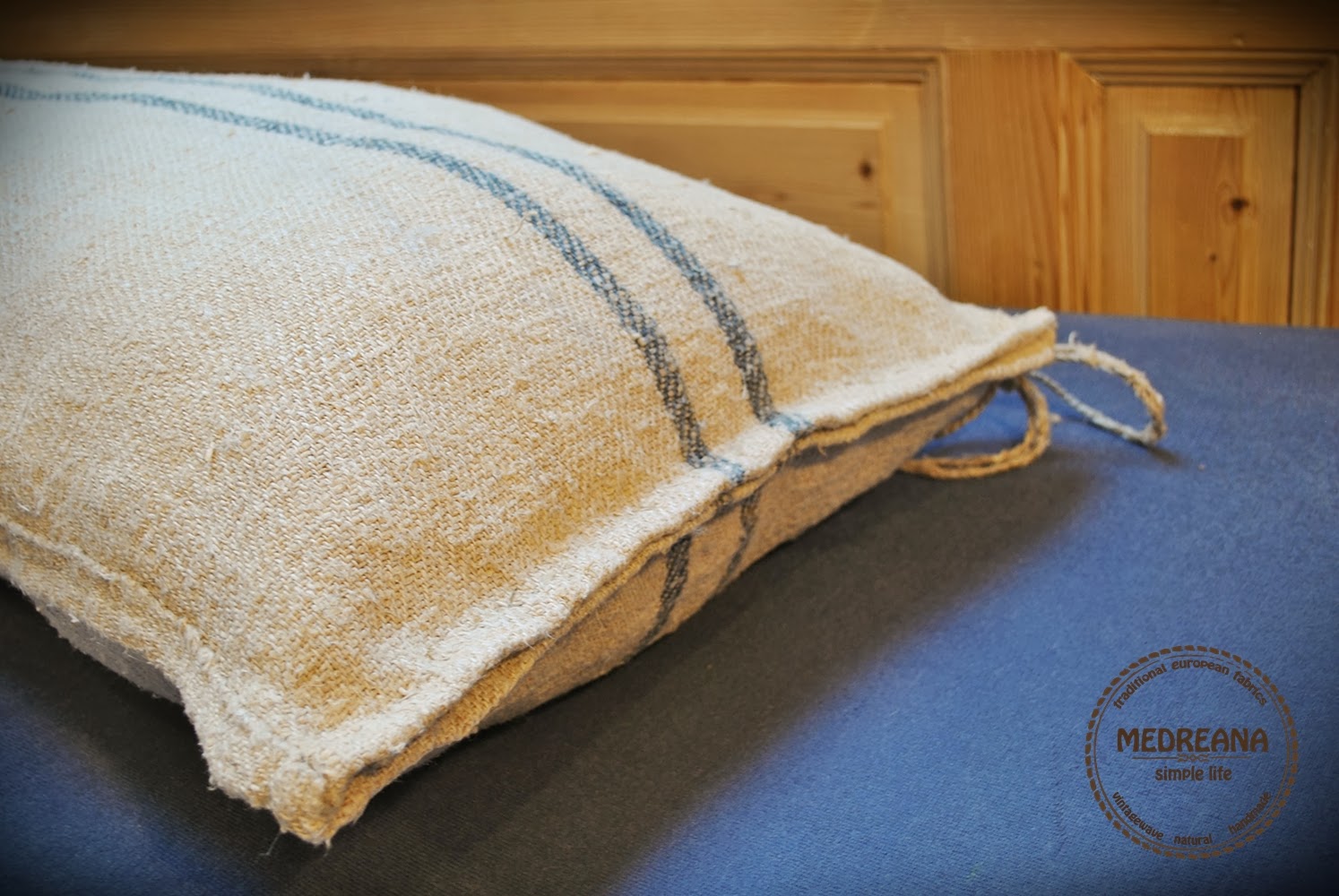 Vintage Authentic Grain Sack Body Pillow Sham Blue/Antique hemp linen/Handmade Pillow Sham